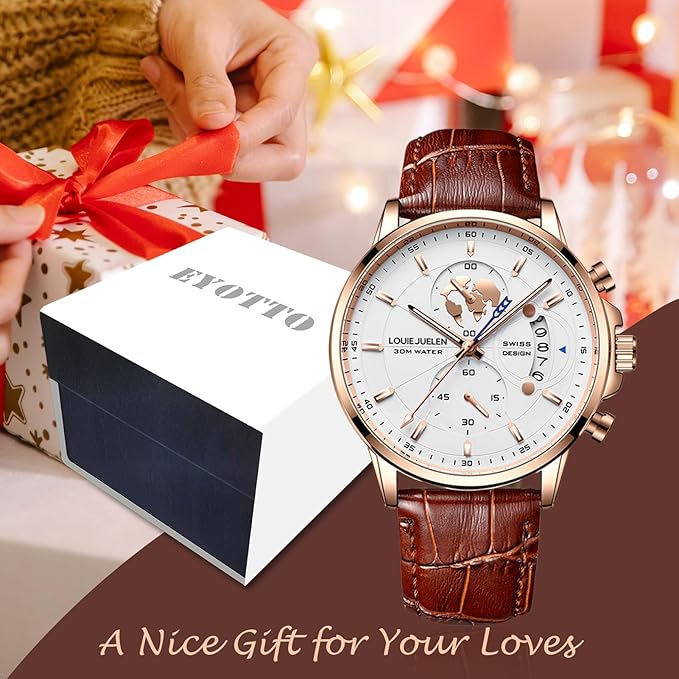 - A Nice Gift Ideal: This versatile men’s dress watch blend goes with every occasion, business, formal dress, or casual. You can wear this wrist watch for commerce, leisure to indoor and outdoor activities or for daily use. Also, eYotto men’s watch comes with an exquisite gift box, it is the preferred present for father, husband, son, brother, boyfriend, friends, and your loved ones. Nice watches for men! Perfect for Valentine’s Day, wedding, anniversaries, birthdays, Father’s Day, Christmas